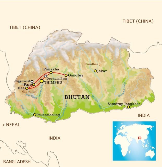 Bhutan is een land met veel hoogteverschillen. Hoogteziekte kan optreden vanaf 2500 meter, maar treedt meestal pas op vanaf 3500 meter. Hoe sneller u stijgt, hoe groter de kans dat u last krijgt van hoogteziekte. Hoewel Bhutan hoger ligt dan de meeste mensen gewend zijn, komt hoogteziekte hier zelden voor. De meeste valleien liggen onder de 2500 meter en de bergpassen zijn over het algemeen slechts iets hoger dan 3000 meter. Gedurende sommige trekkingen heeft u kans dat u boven de 3500 meter stijgt. Voorzorgsmaatregelen om de kans op hoogteziekte te verkleinen zijn bijvoorbeeld: niet roken en geen alcohol drinken tijdens de eerste dagen. Daarnaast is voldoende eten, niet te zware maaltijden gebruiken en genoeg water drinken verstandig. Verder raden wij aan om de hoogte langzaam op te bouwen en u niet te veel in te spannen. Bij de samenstelling van onze reizen hebben we rekening gehouden met de opbouw in hoogtes. Er zijn medicijnen op doktersrecept verkrijgbaar tegen hoogteziekte, maar deze helpen niet altijd. De enige echte remedie tegen hoogteziekte is tijdig afdalen naar een lagere hoogte. Reizigers met hart- of longaandoeningen worden geadviseerd om voor vertrek contact op te nemen met hun huisarts.