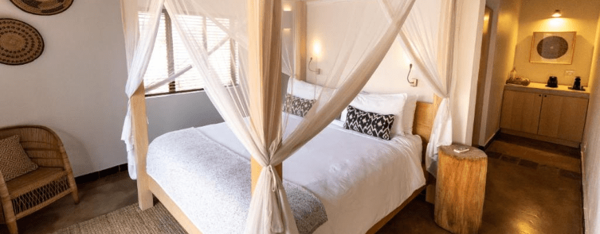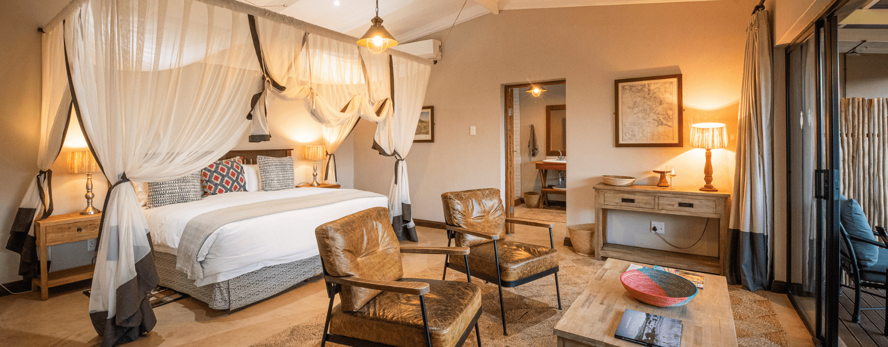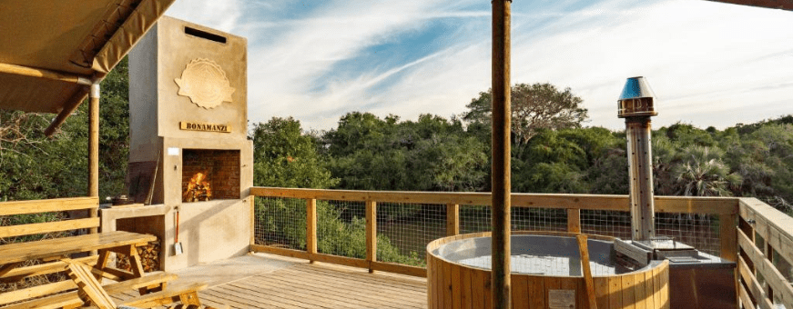 Unieke glamping safari in een groot privé wildreservaat van 4.000 hectare. Dit reservaat staat bekend om zijn eigen game drives, begeleide boswandelingen en een riviercruise om vogels te spotten. Gasten kunnen hier vier van de Big 5 tegenkomen. Naast de tien nieuwe glamping tenten met eigen kookgelegenheid, biedt de accommodatie een prachtig gemeenschappelijk zwembad. Elke ruime tent beschikt ook over een hout gestookte hot tub, de ultieme vorm van ontspanning, vooral met een Afrikaanse zonsondergang voor uw neus met uitzicht op het meer.