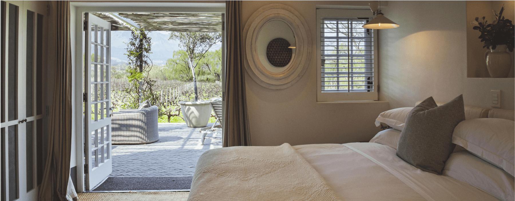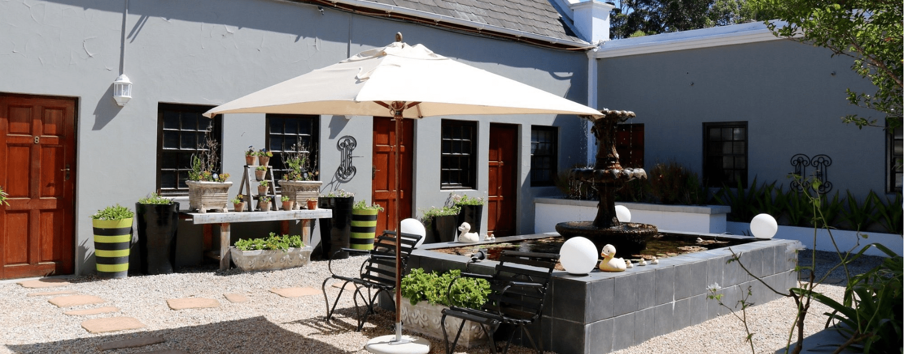 Luxe accommodatie gelegen tussen de wijngaarden op het Grande Provence Heritage Wine Estate net buiten Franschhoek. De historische wijngaard is al 300 jaar oud. Het is een mix van pracht uit het koloniale verleden en moderne luxe. In de ‘Owners Cottage’, een landhuis in Kaapse stijl, zijn vijf luxe suites gecreëerd. Hier vindt u ook een mooi zwembad en een luxe Spa. Gasten worden uitgenodigd voor een tour, wijnproeverij en bezoek aan de kunstgalerie. Franschhoek ligt op 5 minuten en Stellenbosch op 20 minuten rijden.